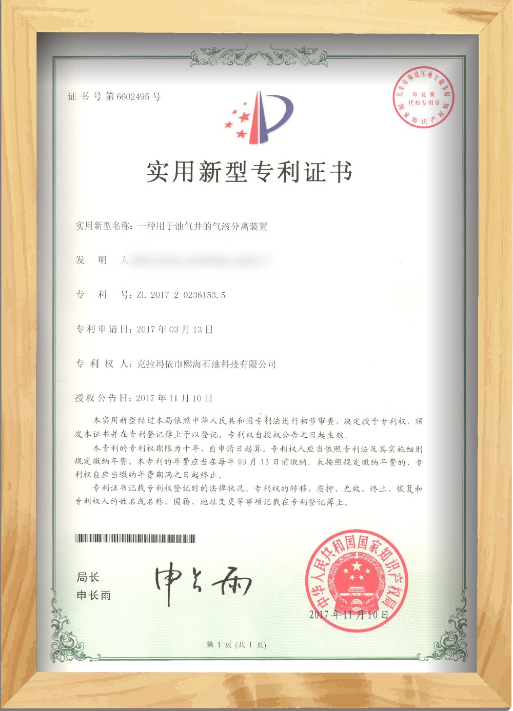 實(shí)用新型 一種用于油氣井的氣液分離裝置